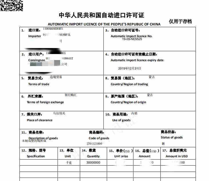 For coal import, it is necessary to apply for automatic import license, which can be applied through a single window.