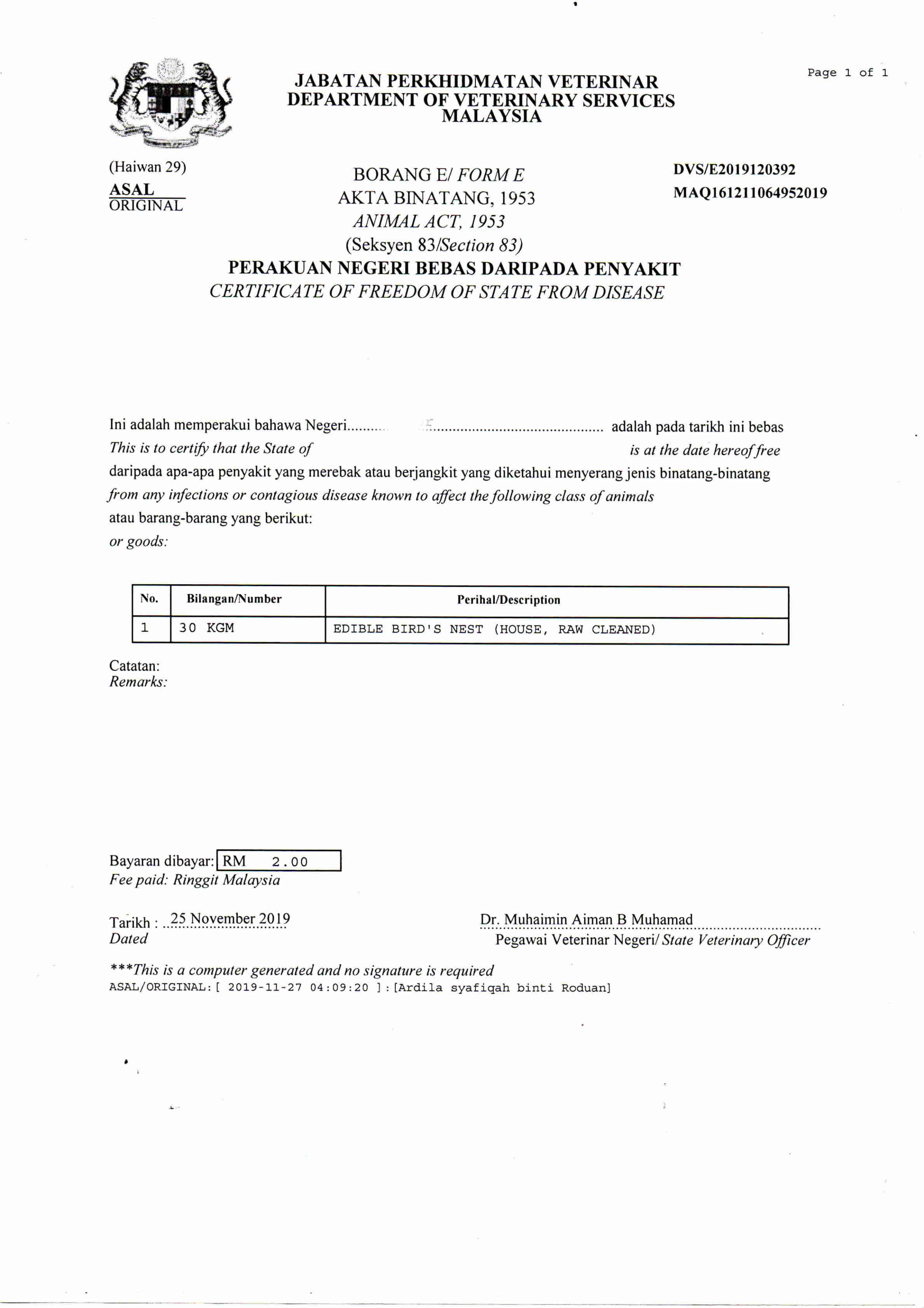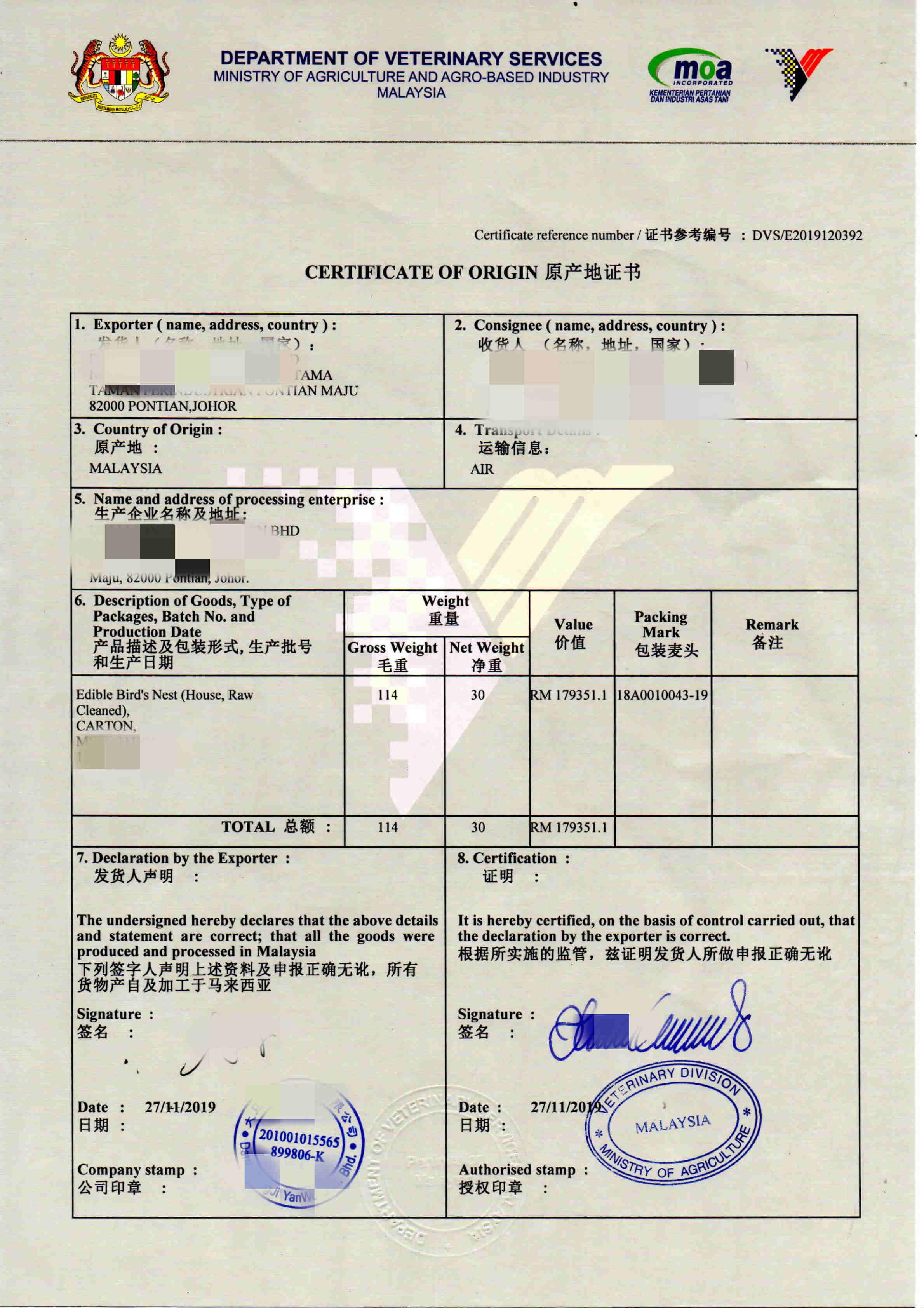 3. 獸醫(yī)產地證(發(fā)貨人提供)