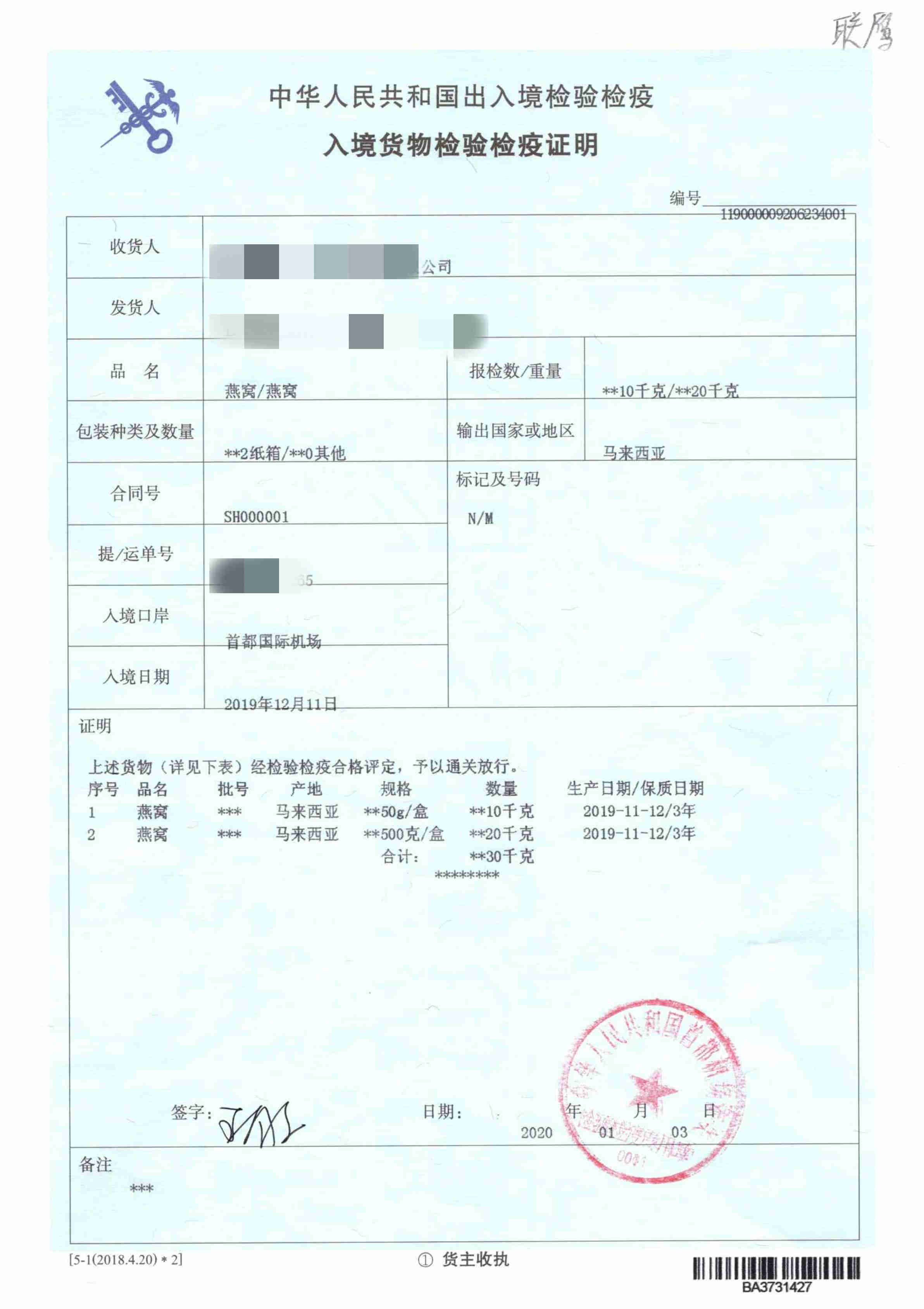 5. 衛(wèi)生證(發(fā)貨人提供)