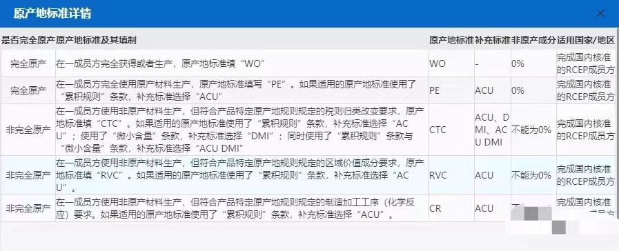 RCEP原產(chǎn)地標(biāo)準(zhǔn)填報(bào)對(duì)照表
